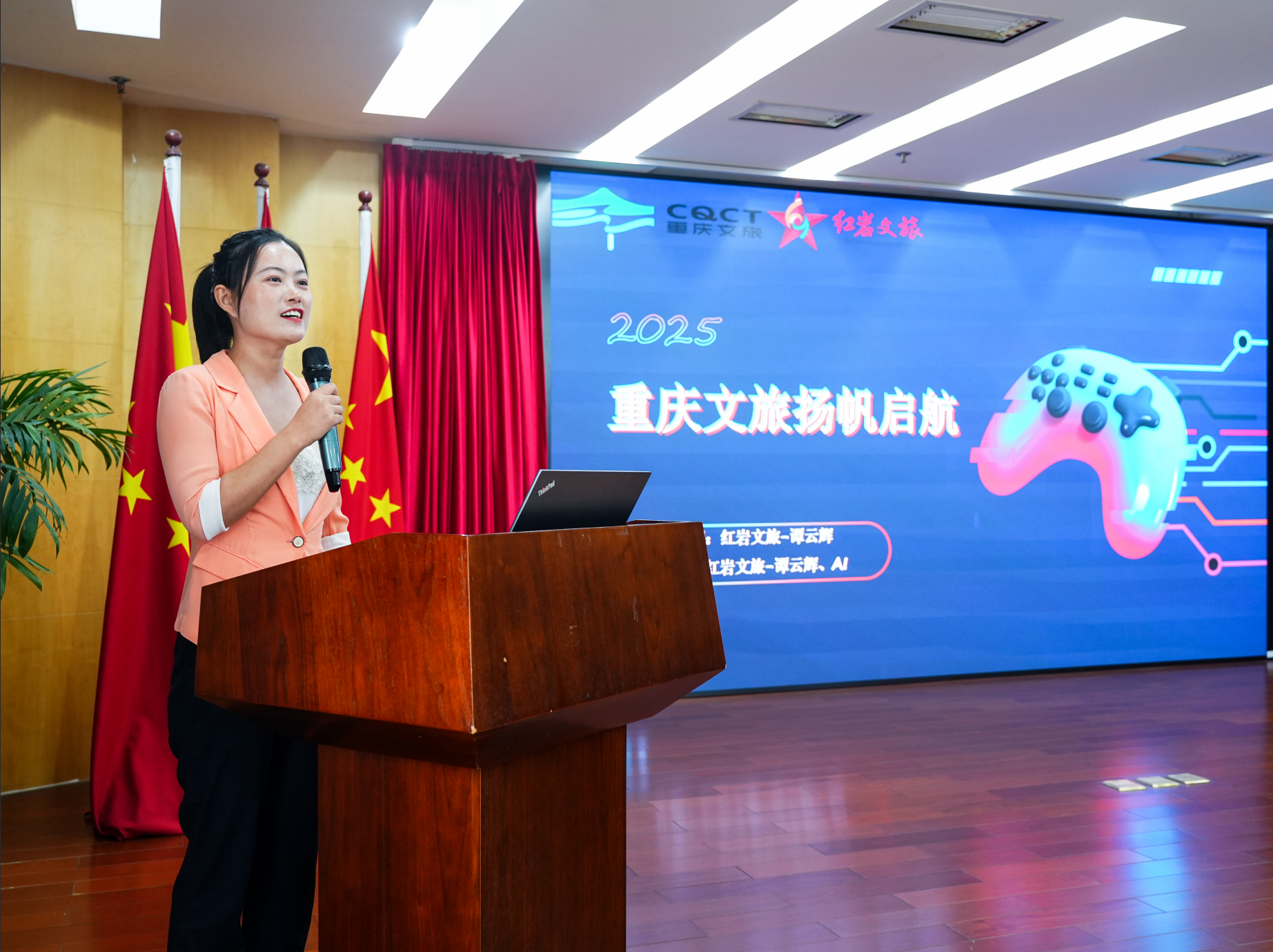 重庆新智红岩文旅分公司谭云辉以“山水人文”为核心,推出原创主题歌曲《重庆文旅扬帆启航》,用艺术语言传递文旅融合的强劲脉搏。歌词中融入了洪崖洞、黄金游轮、长嘉文旅等36家集团子公司名称,象征“三十六股激流”汇聚成重庆文旅高质量发展的磅礴合力。红岩精神如灯塔指引方向,奏响了重庆文旅人团结奋进的号角。