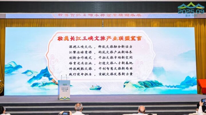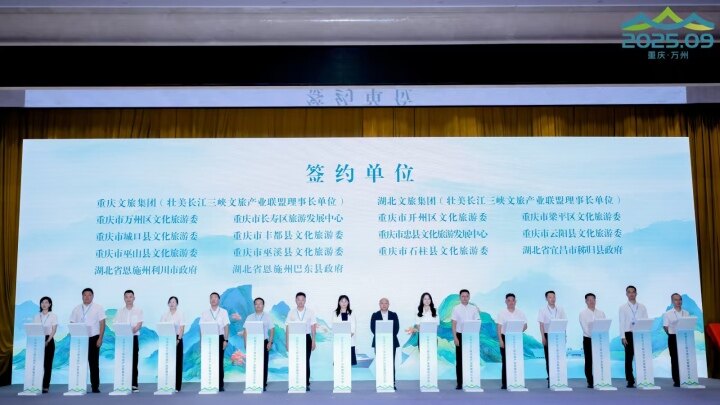 为深入推进巴蜀文旅走廊建设、服务长江经济带高质量发展,9月18日,由重庆文化旅游集团与湖北文化旅游集团共同发起的“壮美长江三峡文旅产业联盟”成立大会在重庆万州举行。大会旨在通过建立跨区域长效合作机制,整合三峡旅游资源、推广特色产品,重塑“长江三峡国际旅游目的地”品牌,提升国际影响力,鄂渝两地政府部门、智库、金融及文旅企业代表等约400人参会。